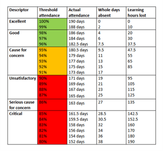 A reminder to parents about the importance of attendance at school- there are coughs and colds going around at the moment, but you should still send your child to school. Often they improve around each other and can continue to benefit from being in school. We have updated our attendance information on our website here – Attendance – Manor High School – Oadby. Something that is really important is to recognise that when we talk about attendance, 90% is not good enough, which is contrary to how we feel about scoring 90% in a test- which is excellent. The chart below presents an excellent explanation of this.