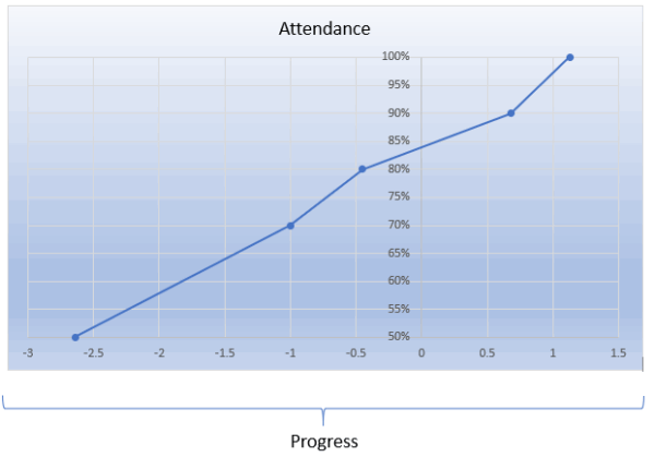Thank you for encouraging your child to attend school every day. Consistent attendance is essential for learning, as it allows teachers to provide the necessary support. With final exams approaching, it is crucial for Year 11 students to be in school daily. Research shows a clear link between attendance and academic progress. We have been sharing the impact of attendance on progress with Year 11 students each week. The graph below illustrates that students with 100% attendance achieve nearly a grade and a half more progress compared to those with lower attendance.