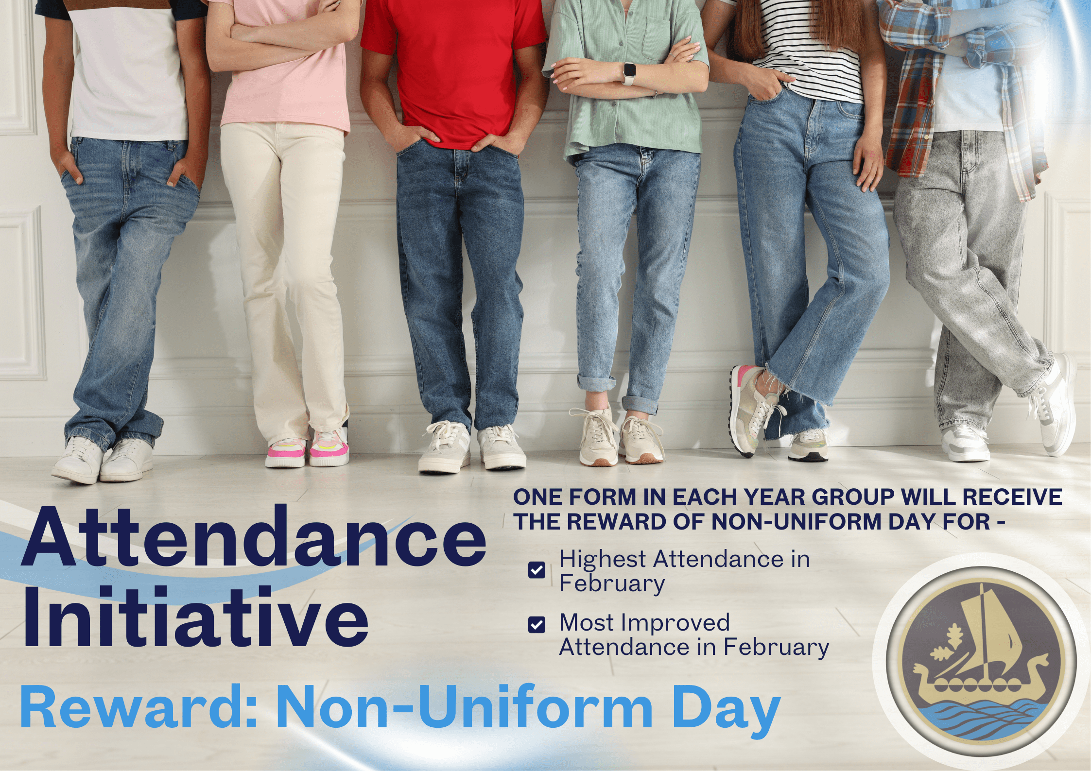 We therefore are running an attendance initiative for the form group in each year group with the highest and most improved attendance in February having the reward of a non uniform day at the end of the month of February.