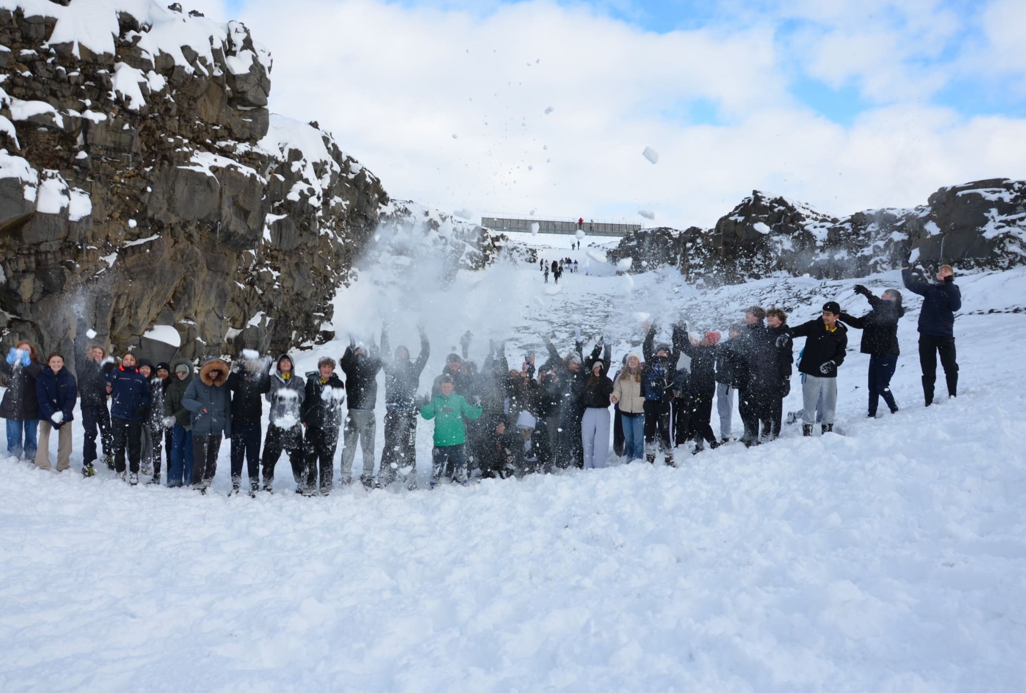 The trip began with incredible views at the boundary between the Eurasian and North American tectonic plates, where students even managed a snowball fight while standing between two continents! The group then visited geothermal fields before finishing the day at the Perlan museum in Reykjavík, exploring its indoor ice cave and enjoying an impressive Northern Lights show. Despite strong winds later in the day, our students showed great resilience and enthusiasm.
