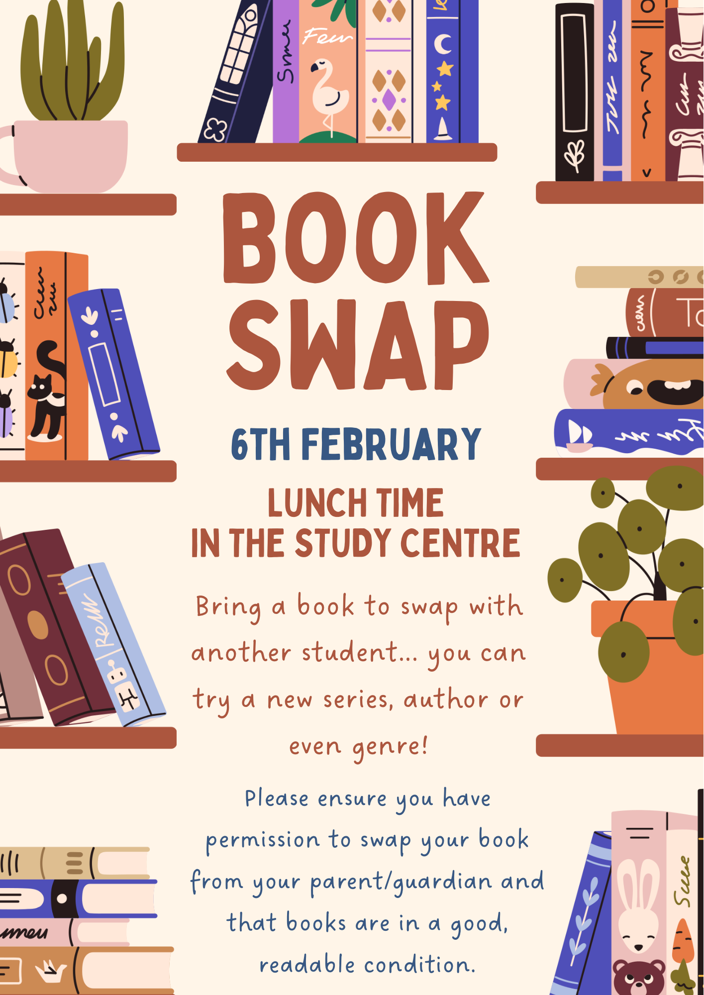 Our Student Leadership Team is excited to announce a Book Swap Event taking place on Thursday 6 February at lunchtime in the Study Centre.